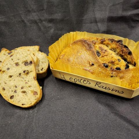 Ingrédients :Farine de Blé semi-compléte , sel, levain ,eau, cramberry, 4 épices Bio